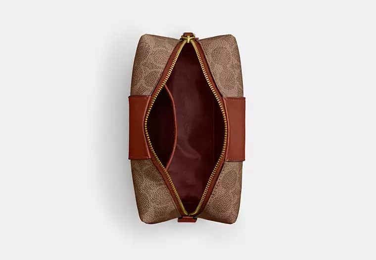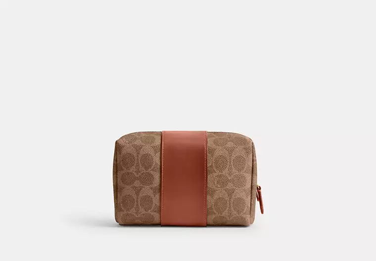 Essential Cosmetic Pouch In Signature Canvas – coated canvas/Brass/Tan Caramel