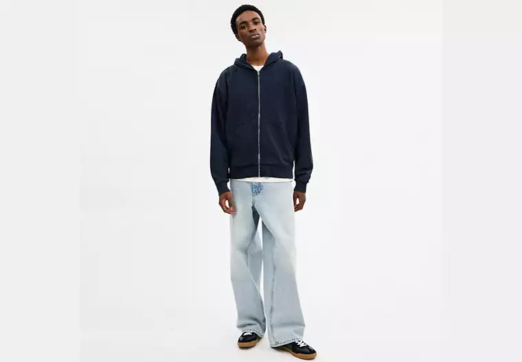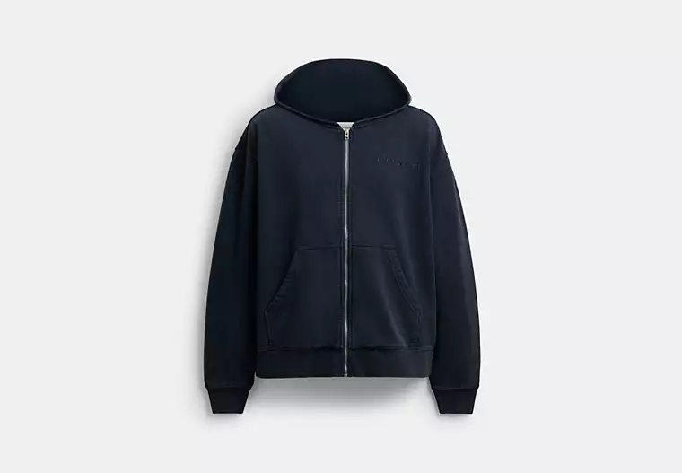 A laid-back style for any season, this soft cotton hoodie is garment-dyed for a vintage, lived-in look. Featuring a metal zip closure and split kangaroo pocket, the relaxed-fit silhouette is finished with our tonal Coach embroidery for a subtle heritage touch.
